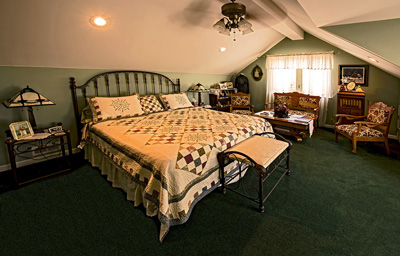 King-size bed. Private bathroom, jetted tub and shower. Top choice for honeymooners or romantics. $210 - plus room tax* |