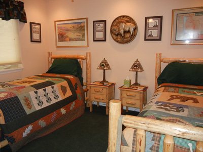 Two log-style twin beds with private bathroom with shower. $175 - plus room tax* |